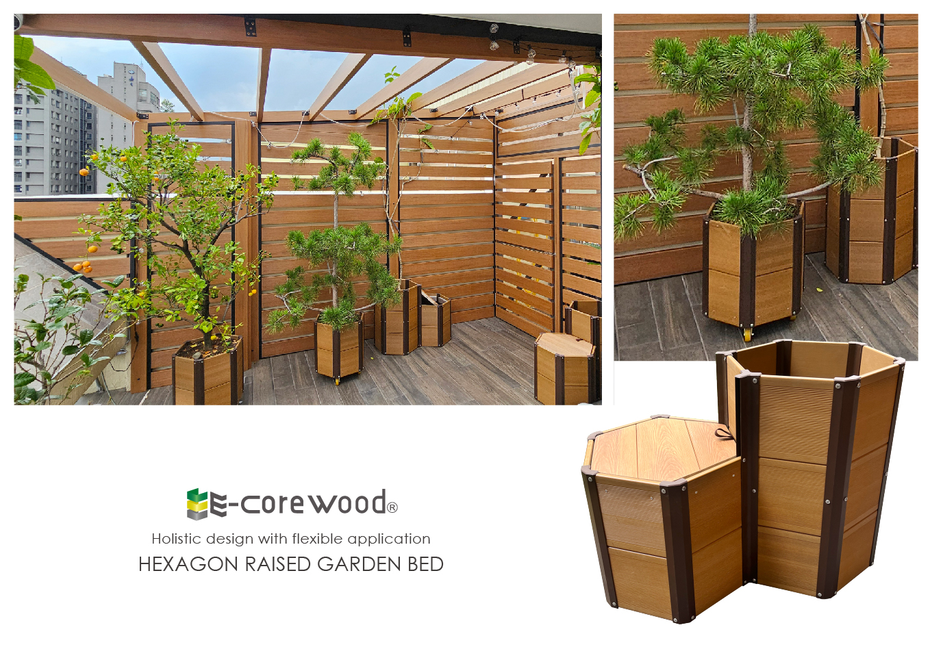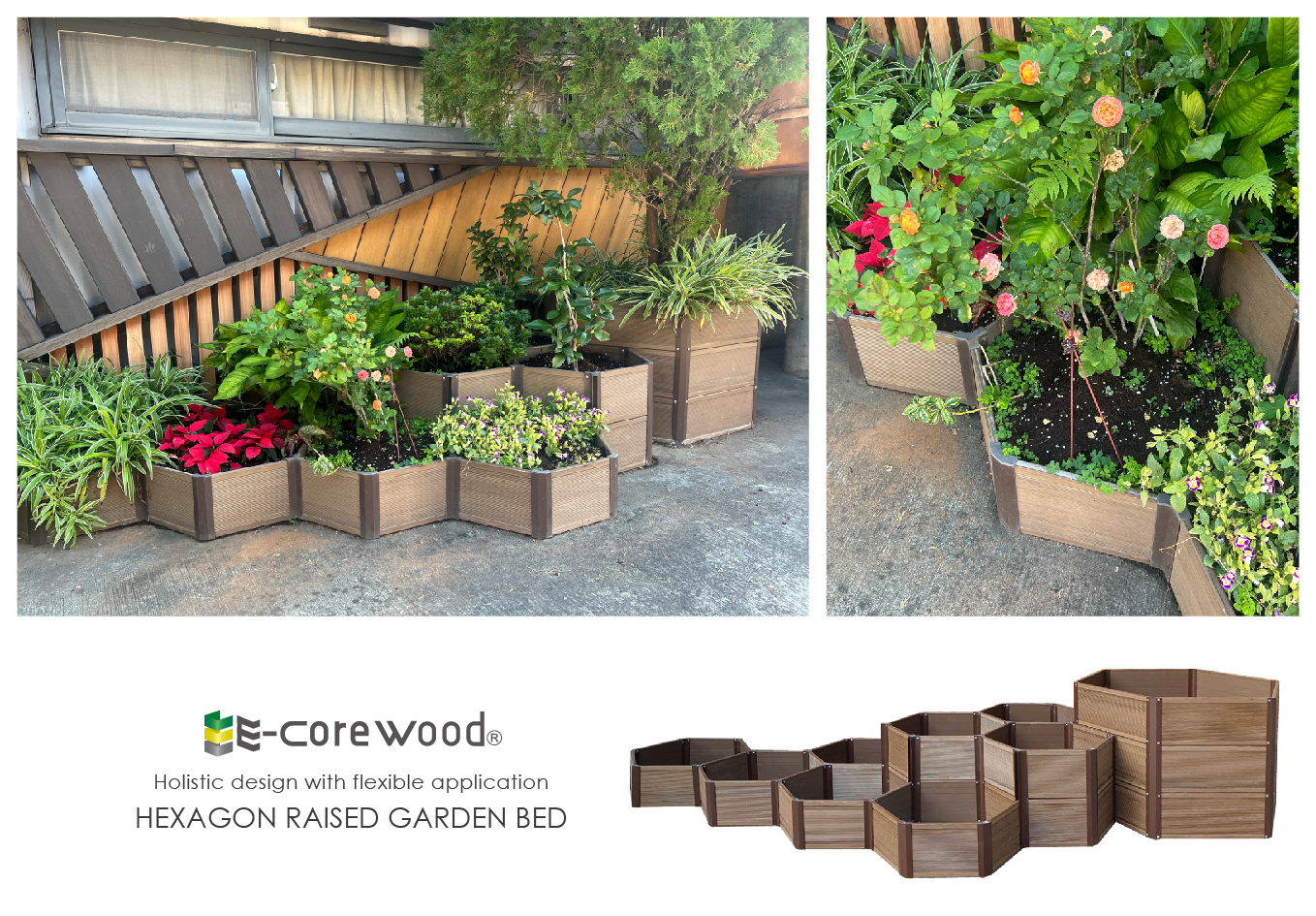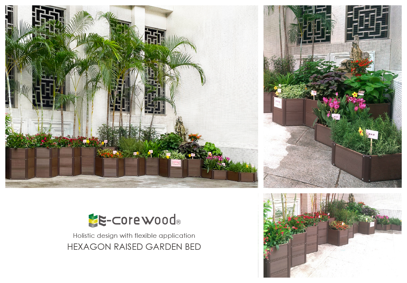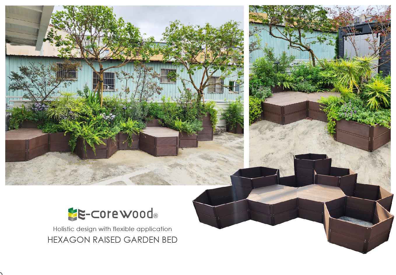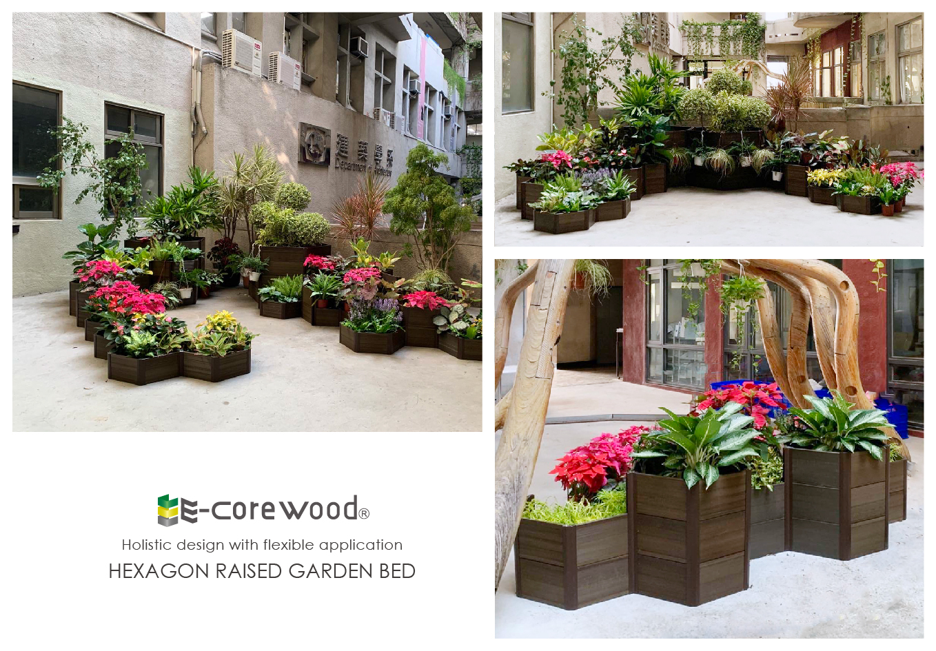 全新「六角植栽槽系統」,由六邊形組合而成的蜂巢結構,獨特的設計與創新的概念,可靈活應用無限延伸,自由搭配不同尺寸與高度,打造獨特層次感,整體規劃設計的植裁槽,風格統一協調不雜亂,營造出和諧且有質感的景觀美學。